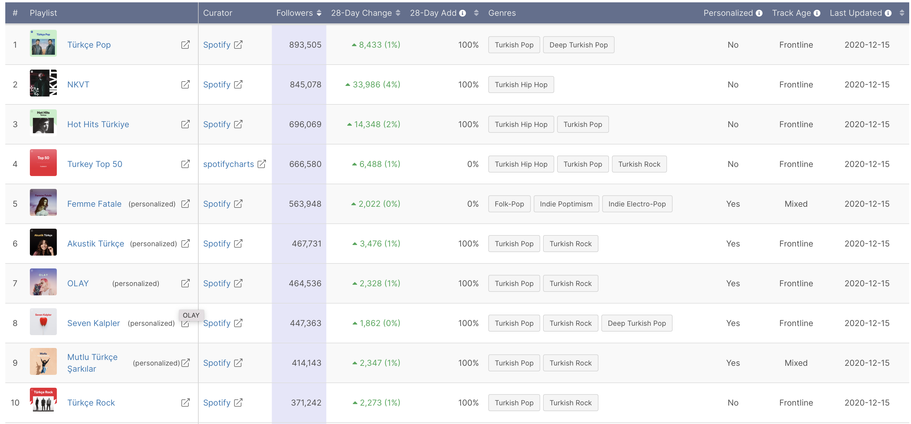 Spotify Türkiye Top 10 çalma listesi